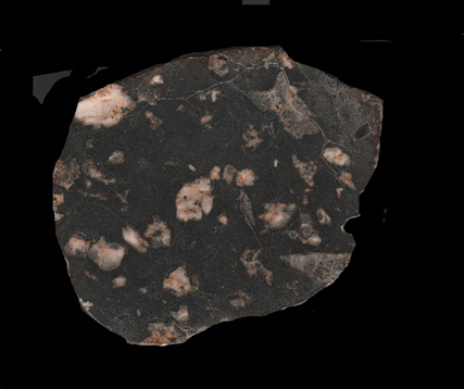 (Volgens het Streckeisen diagram zou het gesteente een LATIET genoemd moeten worden.)
