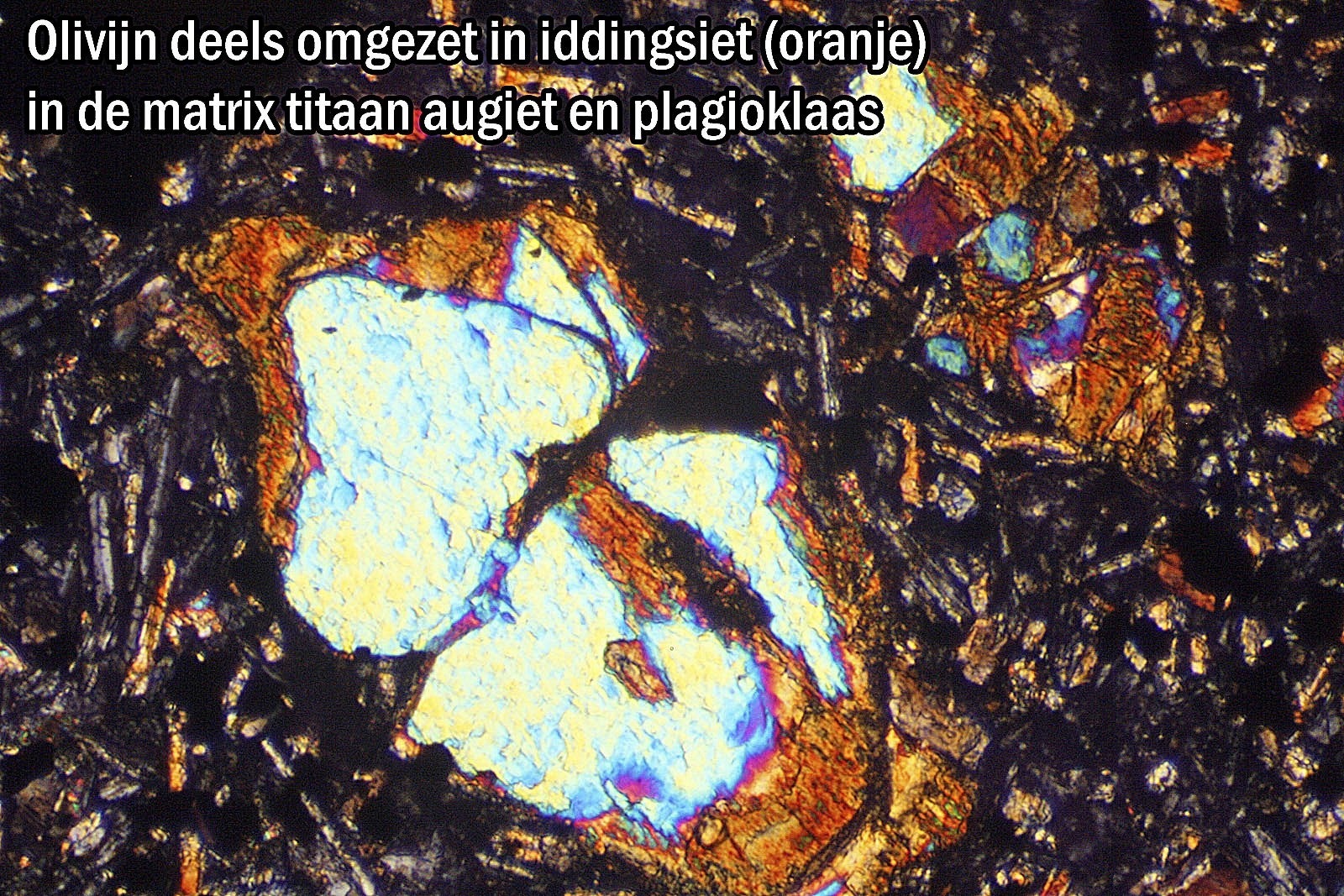 - in de matrix plagioklaas (andesien), titaan-augiet, olivijn en magnetiet