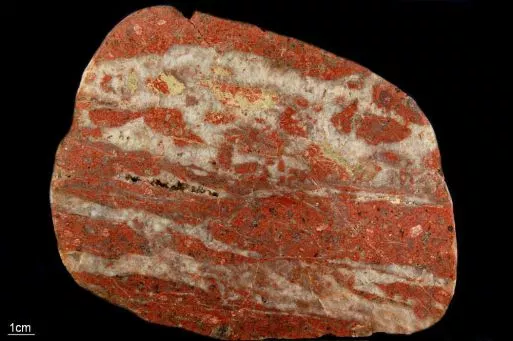 Foto 19. Åland-granietporfier met seismische breuken. Zwerfsteen van Gieten