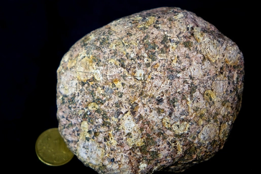 Foto 7. Åland-rapakivi met epidootbreuk. Zwerfsteen van Groningen