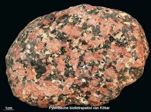 Vondsten van zwerfsteen-rapakivi’s met deformatieverschijnselen zijn vrijwel zonder uitzondering afkomstig uit het rapakivi-gebied van Åland. Uitzonderingen hierop zijn zwerfsteenvondsten van een tweetal porfierische biotiet-rapakivi’s en een Finse graniet-porfier, beide afkomstig van het satellietmassief van Kökar, zuidoostelijk van Åland. De Finse graniet-porfier toont een aantal grillig verlopende, met witte kwarts opgevulde breuken. De roze-geel gekleurde, grootkorrelige biotiet-rapakivi vertoont een enkele centimeters brede zone waarin het gesteente vermalen is. Het veldspaat-kwarts mengsel vertoont een typische, enigszins gebande mortelstructuur.