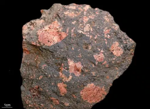Foto 26. Rapakivi-granietbreccie. Zwerfsteen van Haddorf (Dld.)