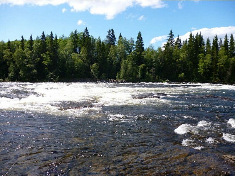 De Indalsälven bij Sorsele in Noord-Zweden. In deze rivier werden rolstenen van Sorselegraniet verzameld. Zij leidden tot de ontdekking van verschillende zwerfstenen van dit graniettype in het Hondsruggebied in Drenthe.