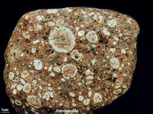 Foto 18. Åland-rapakivi, gepolijst oppervlak van dezelfde zwerfsteen