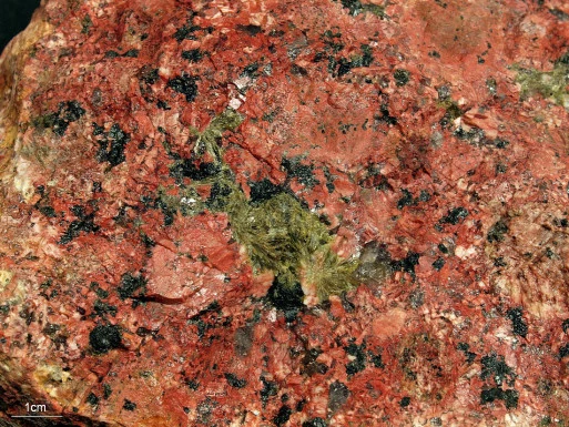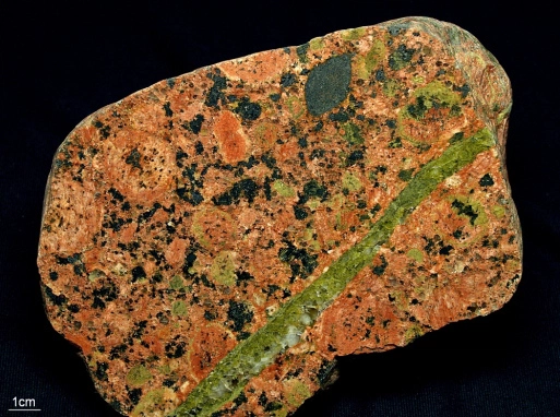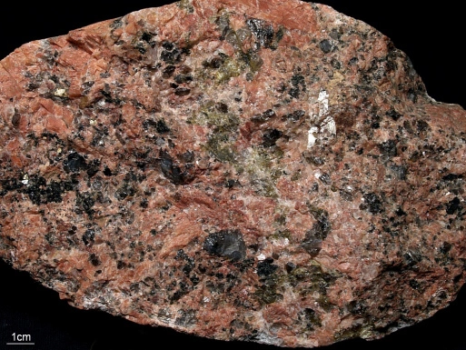 Foto 15. Åland-rapakivi met groene epidoot. Zwerfsteen van Haddorf (Dld.)