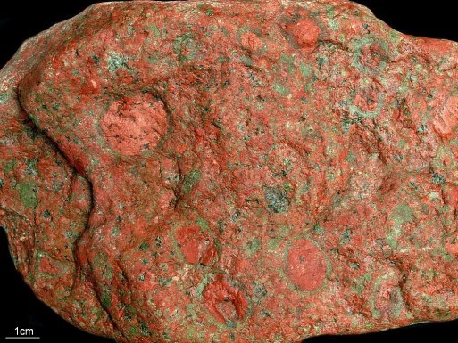 Foto 26. Rapakivi-granietbreccie. Zwerfsteen van Haddorf (Dld.)